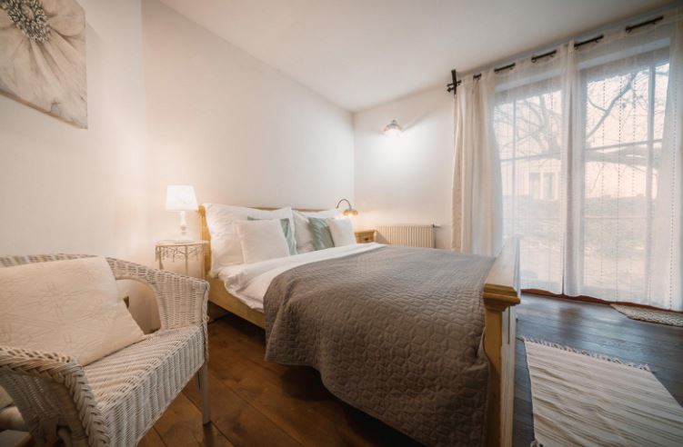 • Dvoulůžkový až třílůžkový pokoj v přízemí se samostatným vstupem ze zahrady