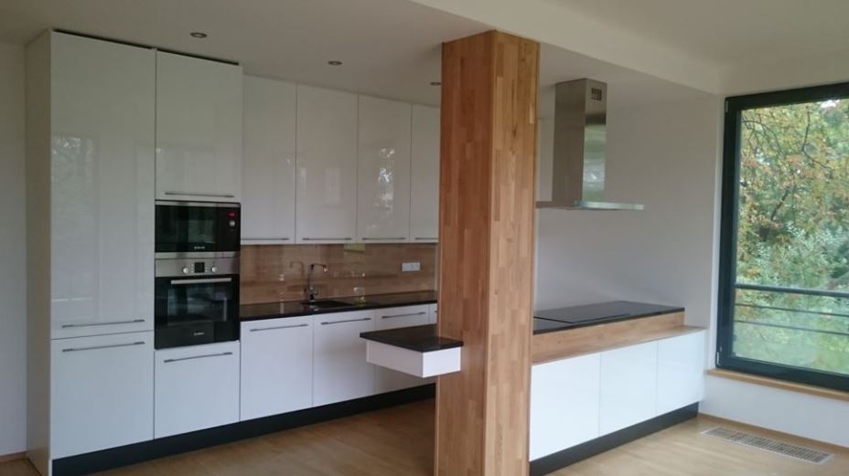 Naše firma tedy vyrábí kuchyně, kuchyně na míru, kuchyňské linky, vestavěné skříně a prodává podlahy včetně jejich pokládky.
