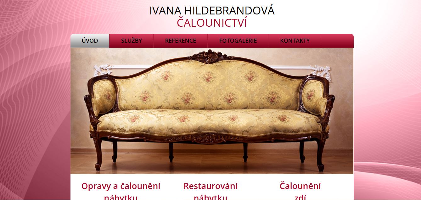 - renovace historického nábytku – restaurujeme historický čalouněný nábytek jako jsou např. sofa, chaise longue, válendy, otomany, klubovky, ušáky, gauče, židle, podnožky apod. Vyměňujeme prasklé nebo poškozené pružiny a vkládáme nový výplňový materiál. Pomocí původních technologií opět vzkřísíme zašlou krásu starého nábytku.